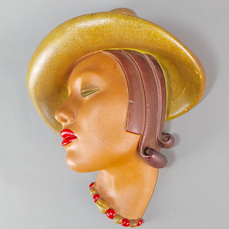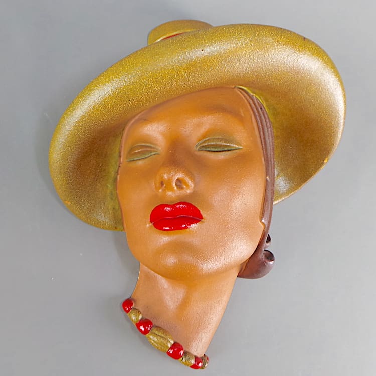 Large English hand painted plaster wall mask by Jon Douglas.