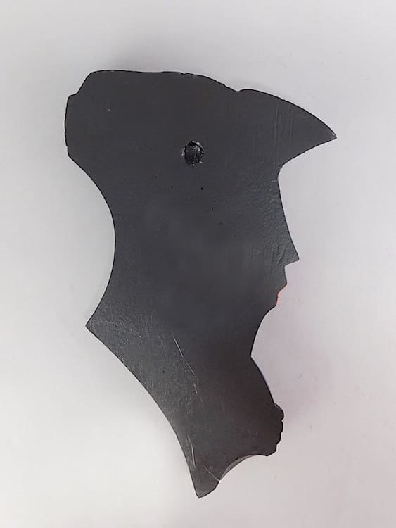 Black painted crystacal wall mask designed by Lindsey B in 1983.