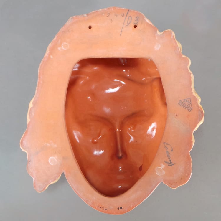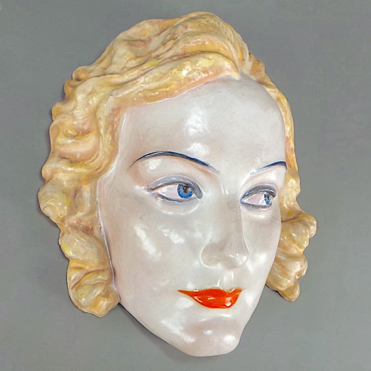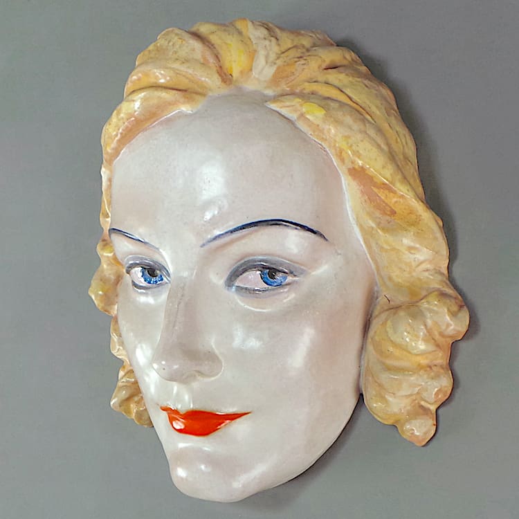 Rare Austrian Art Deco hand painted terracotta wall mask modelled as Greta Garbo.