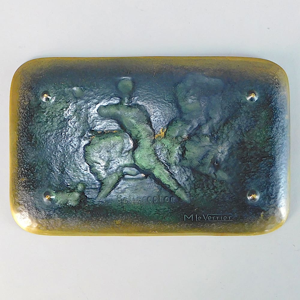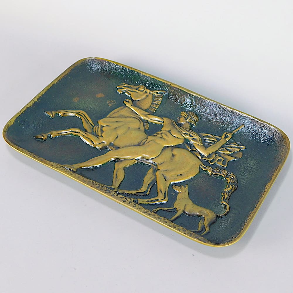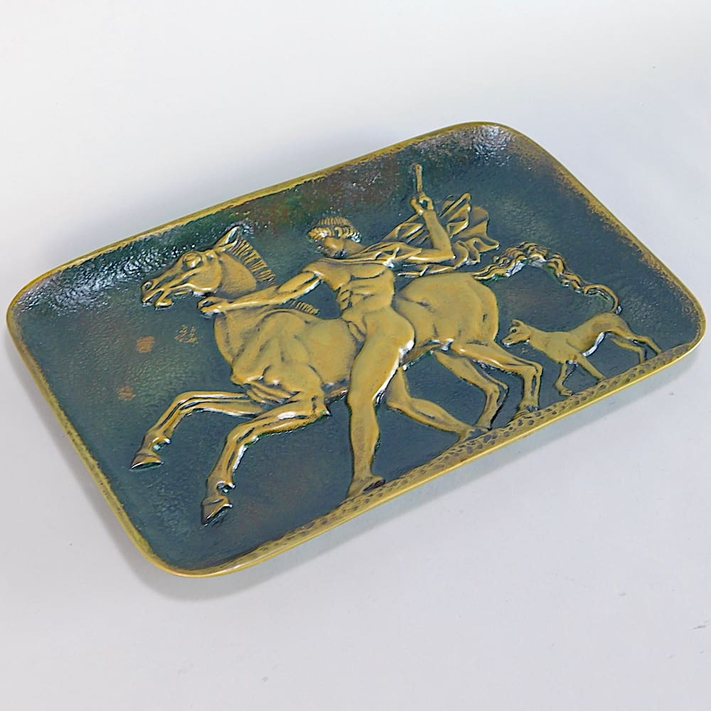 French art deco bronze dish depicting Bellerophon, a Corinthian hero of Greek mythology.