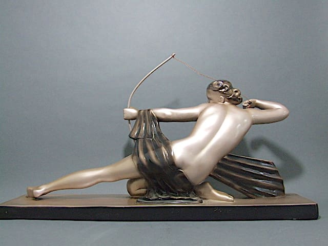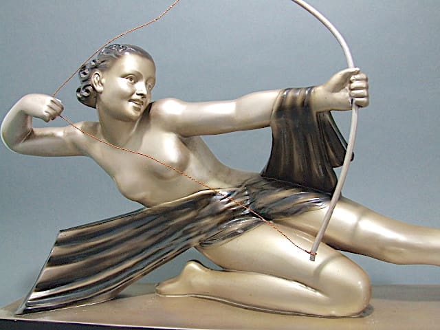 French plaster figure of Diane the Huntress with bow – an unsigned Mellani.