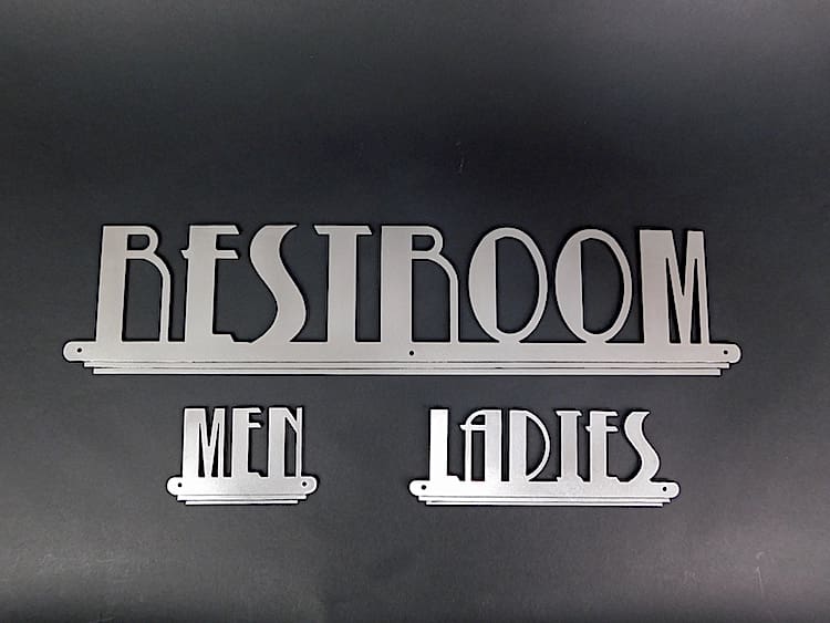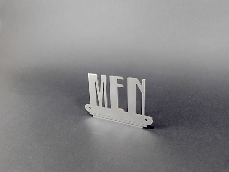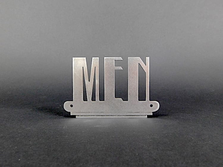 A reproduction Men sign in 3mm stainless steel, a copy of an original from the set of American restroom signs that I own.