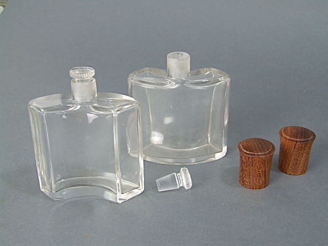 French art deco and 6 belle scent set in a wooden wooden and ivory holder tray.
