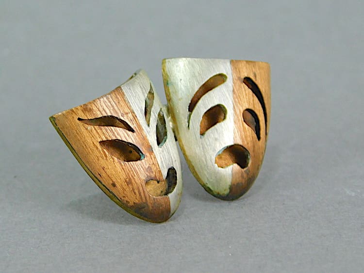 Rare 1920’s art deco Mexican silver comedy and tragedy lapel pin. It bears Taxco markings to the back.