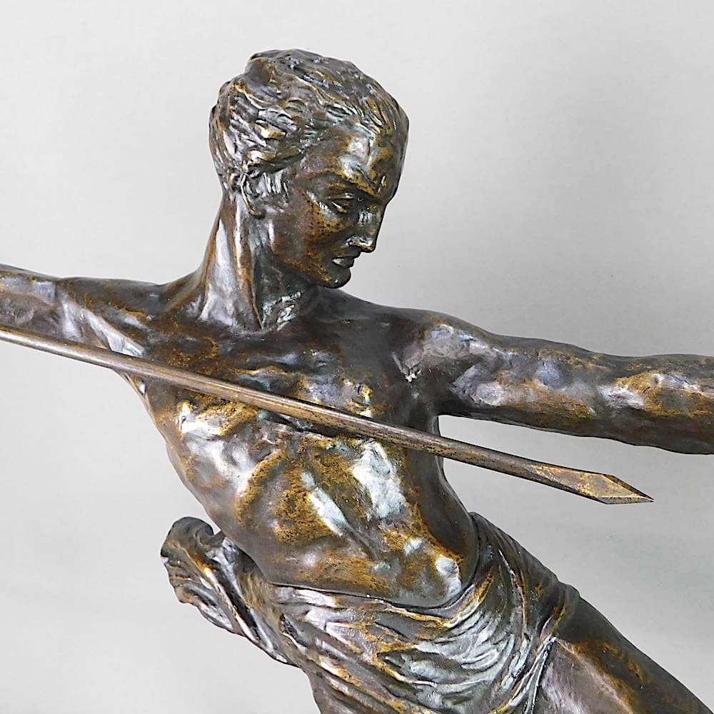 Marble base measures 35.9 inches (90cm) long, 9 inches (23cm) deep and the height is 19 inches (49cm) and total length with the spear in position is 50 inches (127cm).