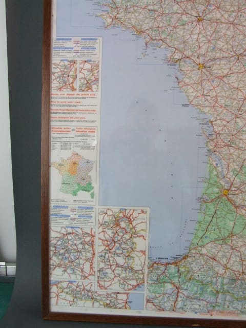 Large French Michelin map of France – 1978, mounted in an oak frame from new.