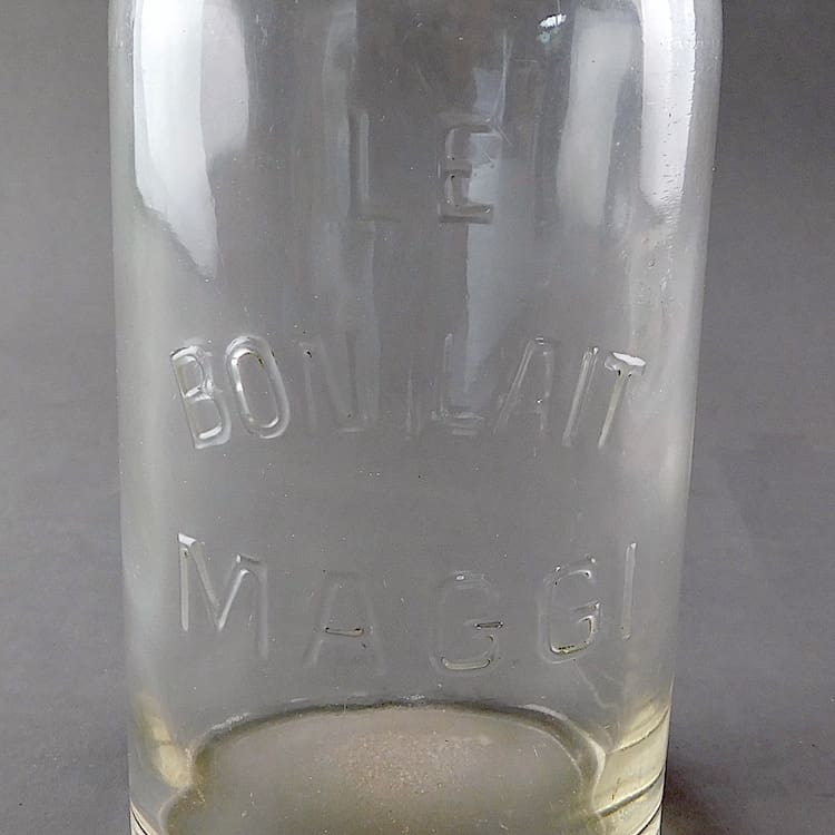 The bottle reads Le Bon Lait Maggi which translates to “the good milk, Maggi” or “the good Maggi milk” – I believe this is in reference to the Maggi food company founded in Switzerland in the late 19th century.
