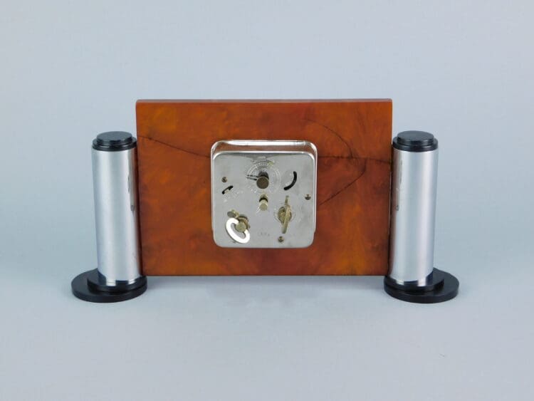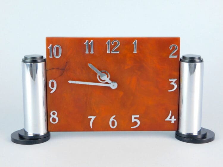 Modernist art deco German phenolic and chrome large arm clock.