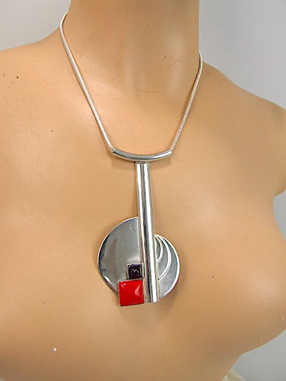 French silver plated snake chain necklace with onyx stones in red and black. There is a makers mark but I cannot red it.