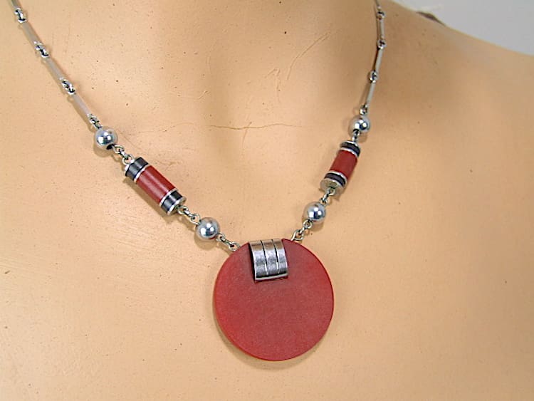 Made in the 1920s – 1930s by the Jakob Bengel company in Germany. This is a vintage and used art deco necklace.