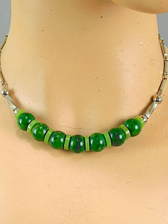Chrome and galalith original art deco necklace, made in the early 1930s by the Jakob Bengel company.