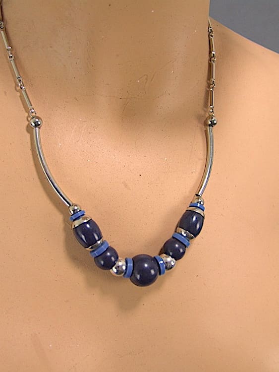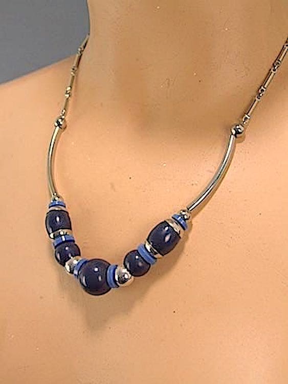 Two tone blue galalith necklace. Made by Bengel in the early 1930s.
