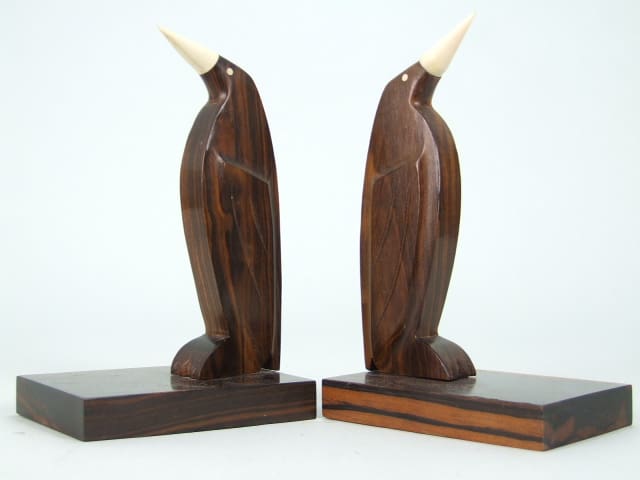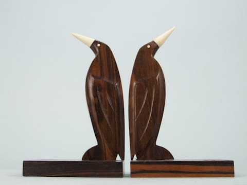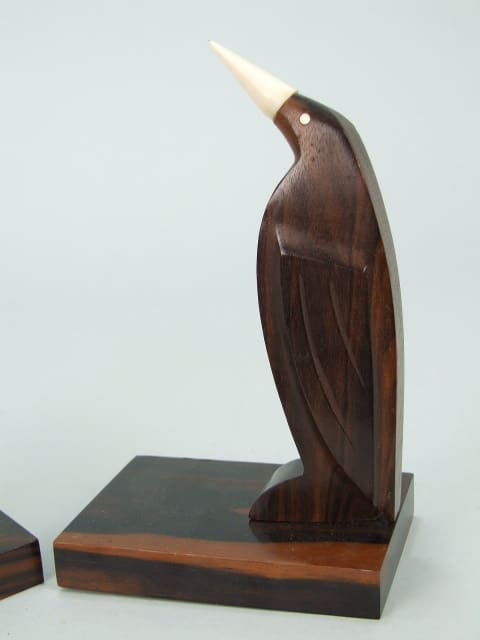 French macassar and ivory bird bookends. Hand carved in modernist design.