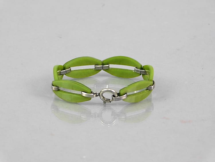 Green galalith art deco bracelet by Jakob Bengel.