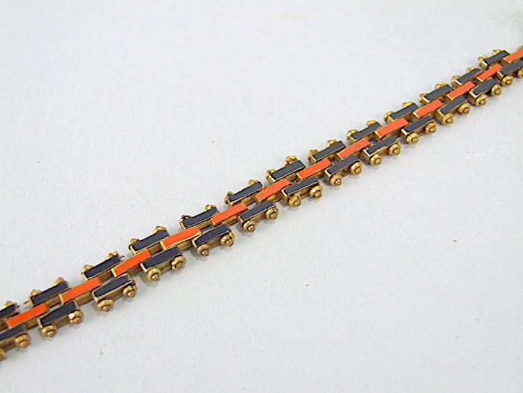Guilt metal brick chain mail bracelet, fits a small wrist. It is new/old stock.