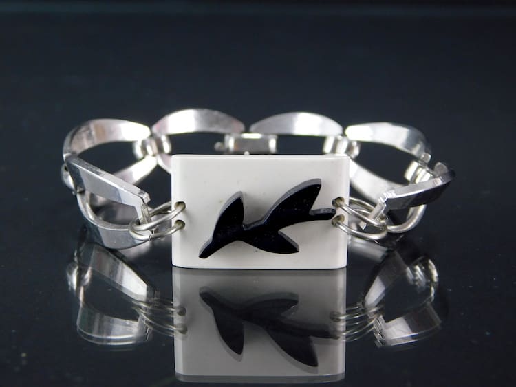 Chrome, cream and black galalith necklace, made in the early 1930’s by the German company of Erger Berge.