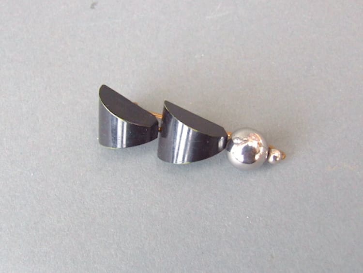 Modernist black galalith and chrome Brooch by Bengel.
