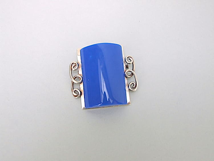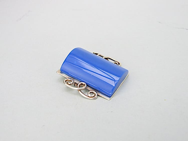Blue galalith and chrome brooch by JHP Paris, marked Made in France to the inside panel and is fitted with a slide safety clasp.