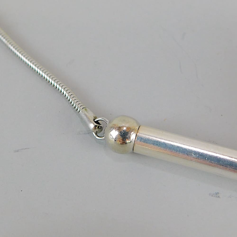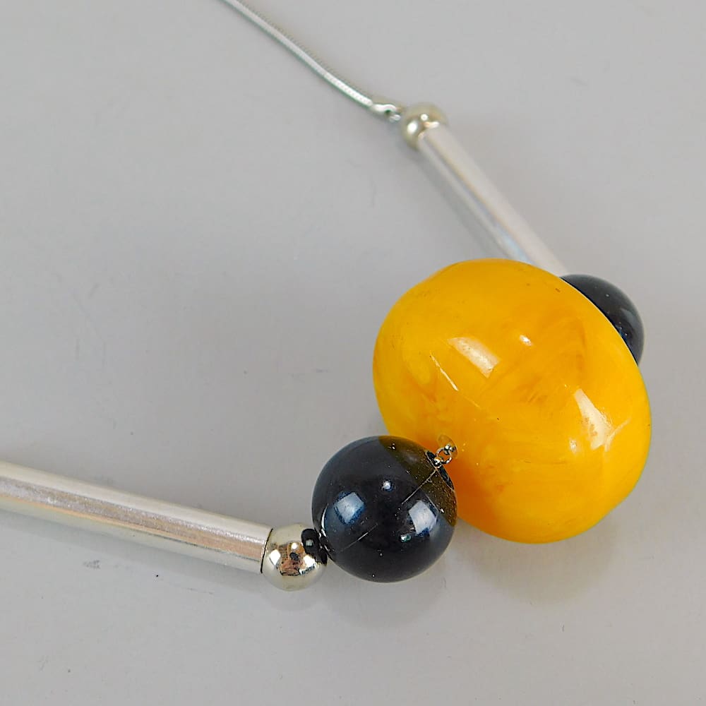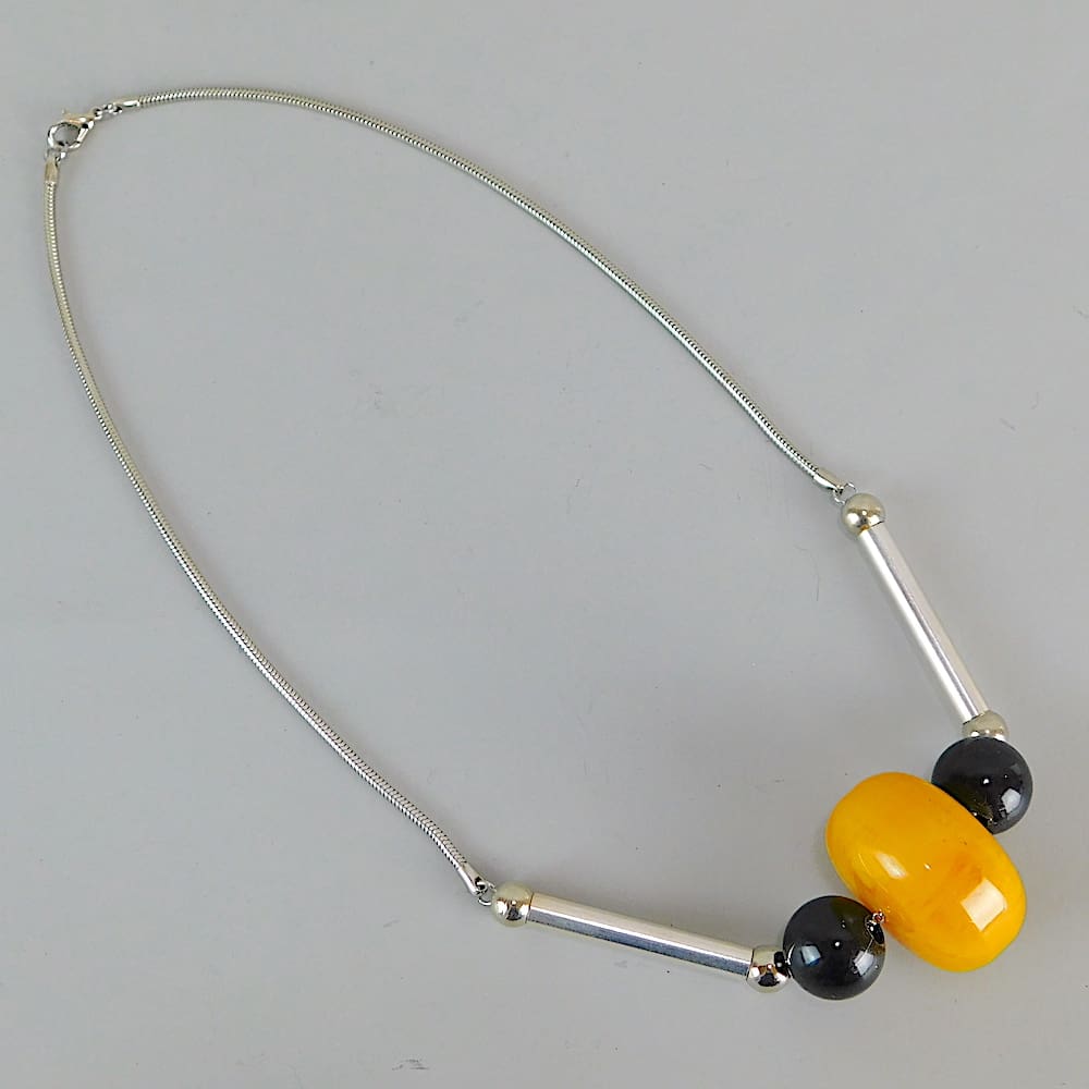 Modernist catalyn art deco necklace with chromed metal chain.