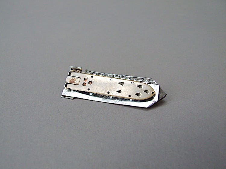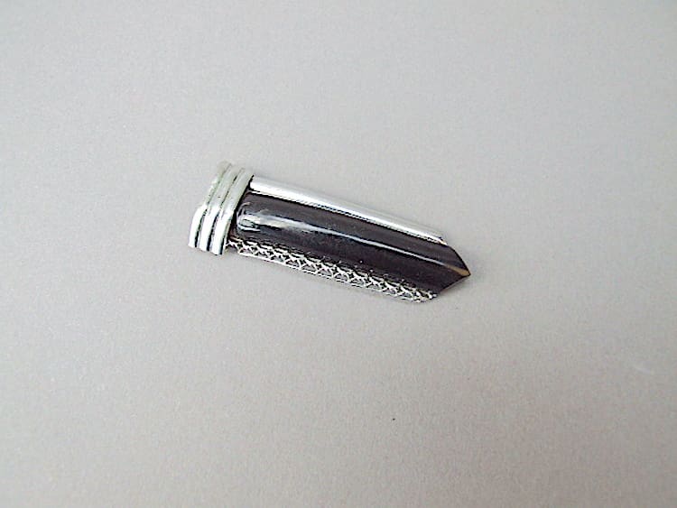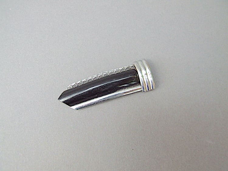 Jakob Bengel Bauhaus design black galalith and chrome dress clip.