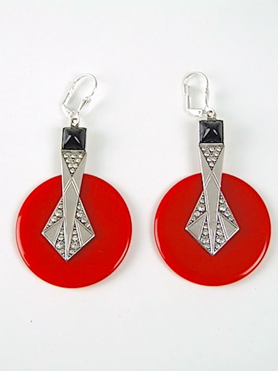 Red phenolic discs with black only stone and diamonte.