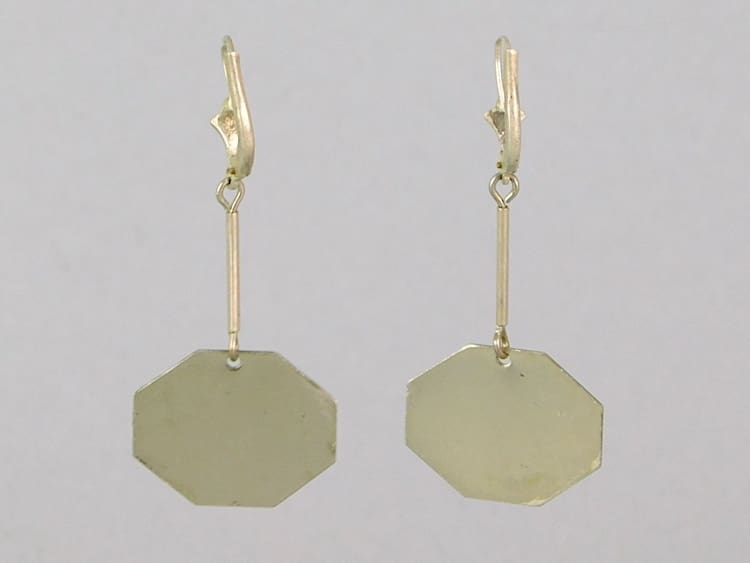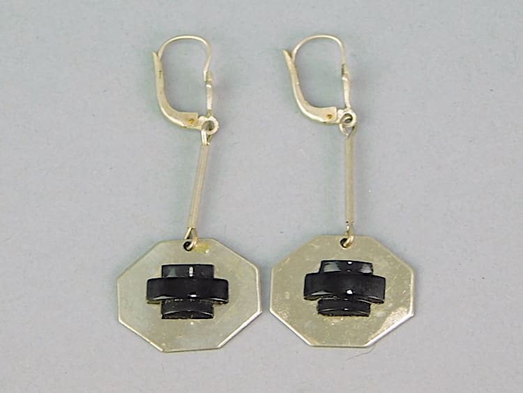 Chrome and black galalith earrings for pierced ears. Made in the 1930’s by Bengel.
