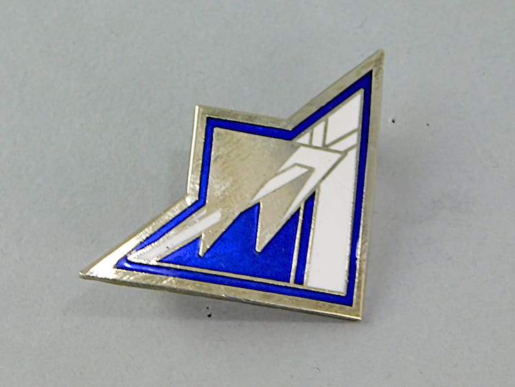 Modernist navy and white enamel art deco brooch. With roll safety clasp.