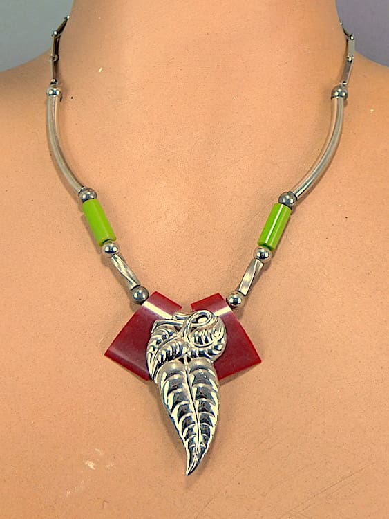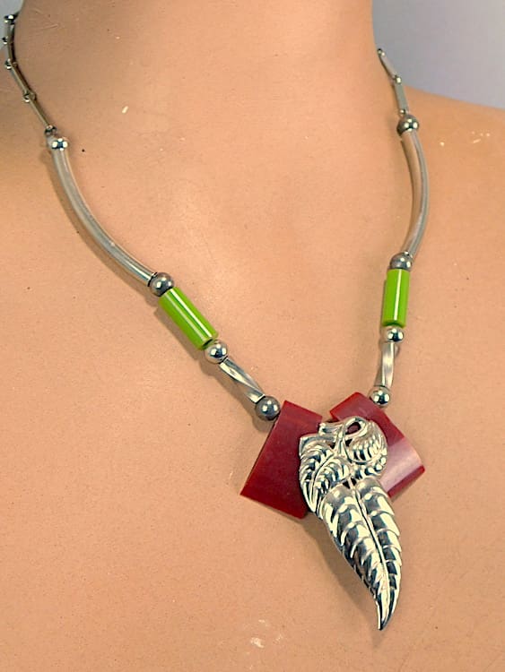 Red and green galalith modernist necklace, made by the Bengel factory in early 1930’s.
