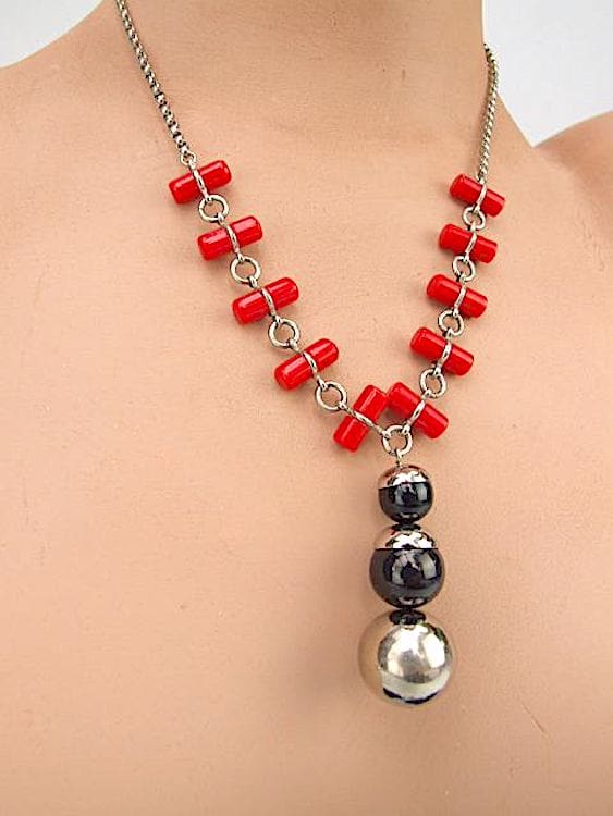 Red and black galalith modernist necklace, made by the Bengel factory in early 1930’s.