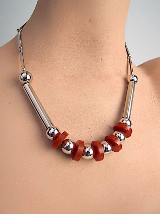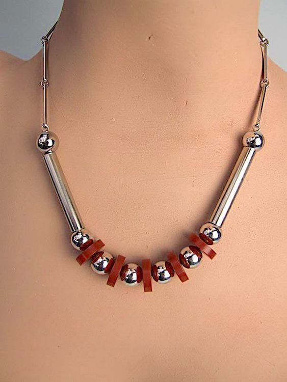 Chrome and galalith necklace made in the early 1930s by the Jakob Bengel company.