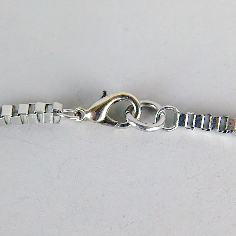 It measures 16 inches (41cm) from clasp to clasp. The central ball bead measures 1 inch (2.5 cm) wide.