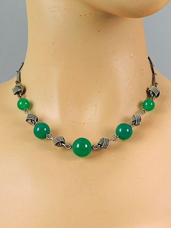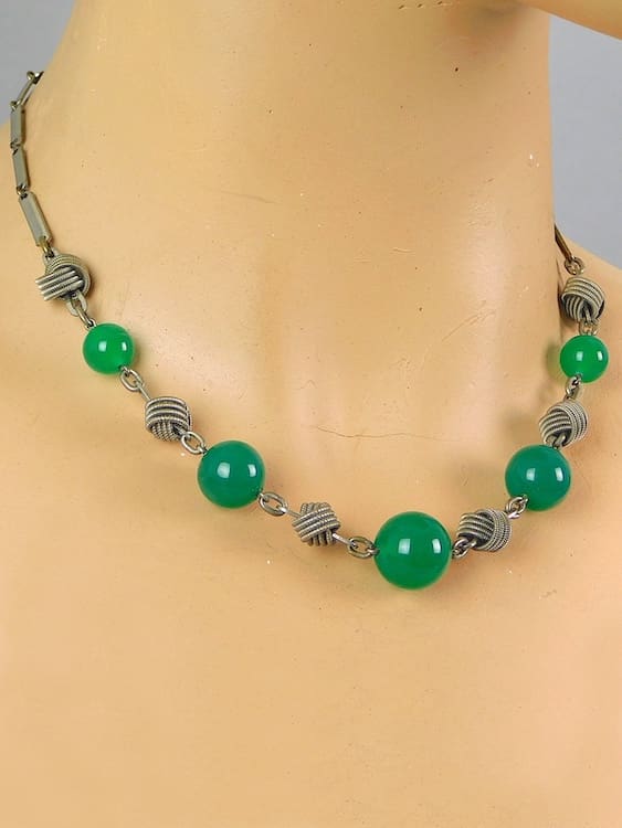German modernist art deco green glass balls with twisted link detail – necklace by Jakob Bengel. Circa 1930s.