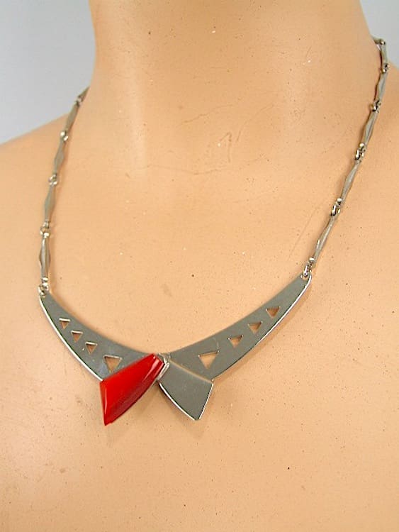 Made in the early 1930’s of chromed metal with a red galalith panel.