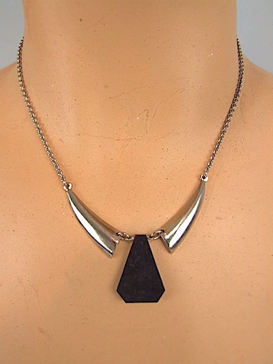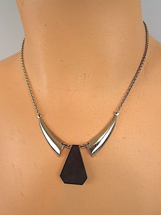 Delicate modernist galalith and chrome necklace by Bengel. Made in the early 1930’s by the Jakob Bengel factory.