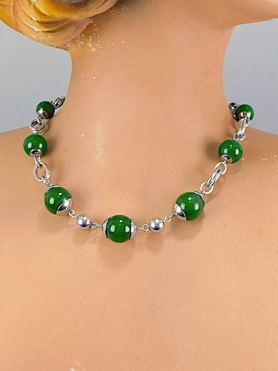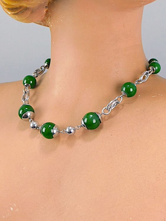 Early 1930’s Jakob Bengel Bauhaus design green galalith and chrome necklace.
