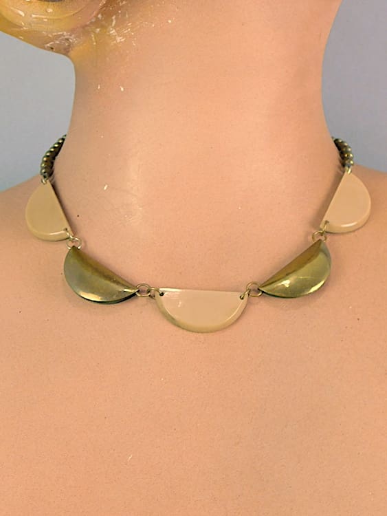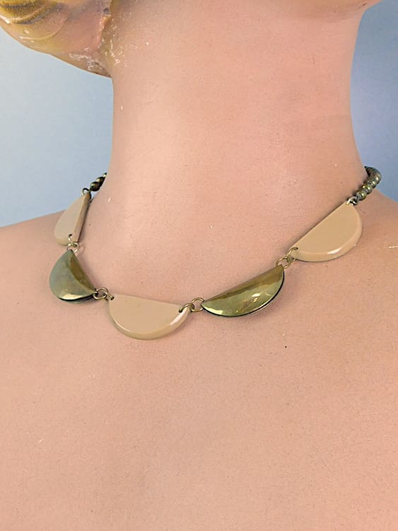 Beige galalith and gilt metal Bengel necklace, made in the early 1930s.