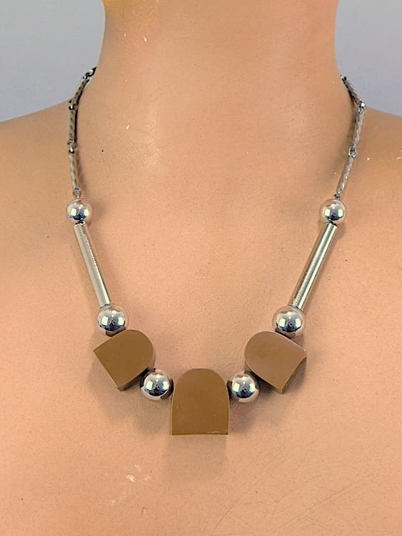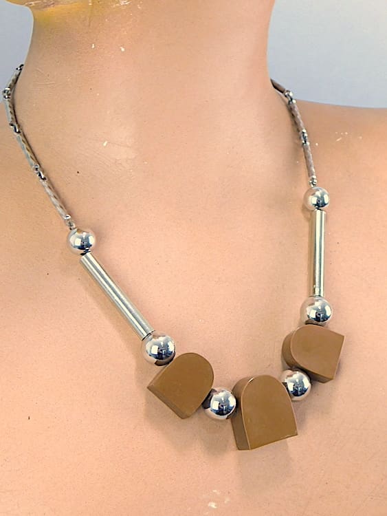 Brown galalith modernist necklace by Jakob Bengel.