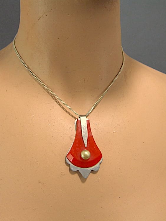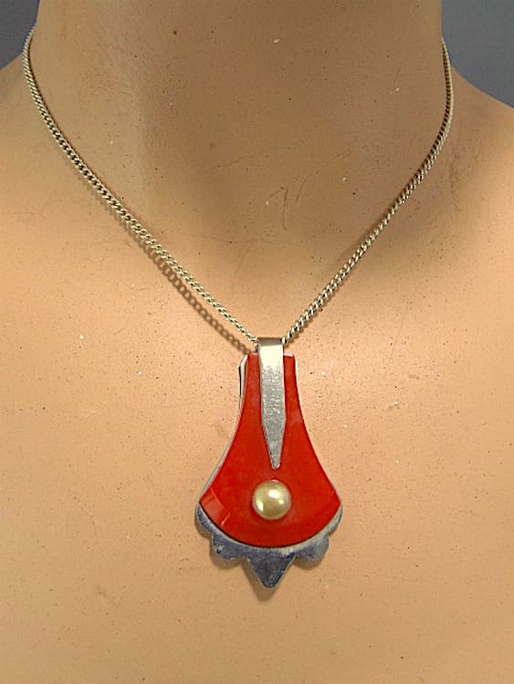 Modernist chrome and galalith original art deco pendant necklace, made by Jakob Bengel in the early 1930s.