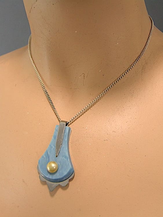 Modernist chrome and galalith original art deco pendant necklace, made by Jakob Bengel in the early 1930s.
