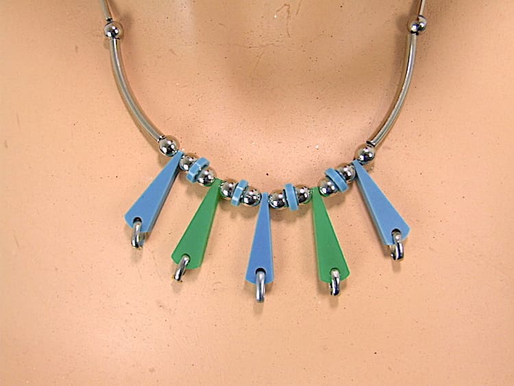 Green and blue galalith necklace. Made by Bengel in the early 1930s.