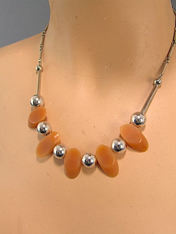 Chrome and galalith art deco necklace, made in the early 1930s by the Jakob Bengel company.
