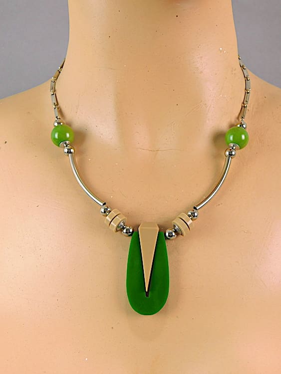 Chrome and galalith original art deco necklace, made in the early 1930’s by the Jakob Bengel company.
