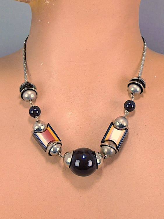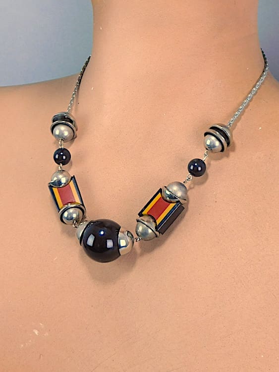 Red yellow and black galalith necklace. Made in the early 1930s by Jakob Bengel company.