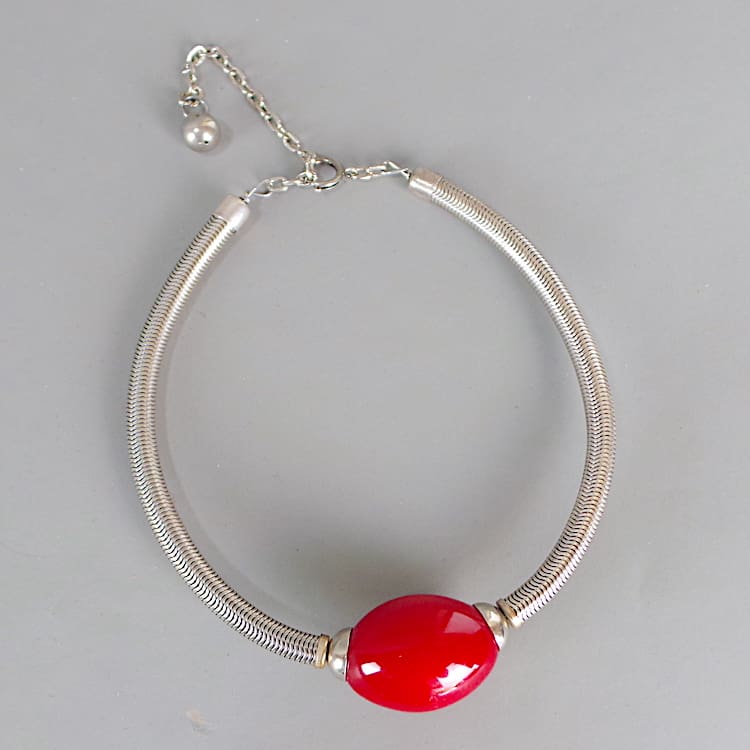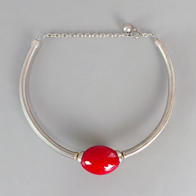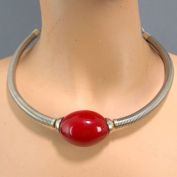 Art deco necklace with black and red galalith bead detail, made by Jakob Bengel in the early 1930s.