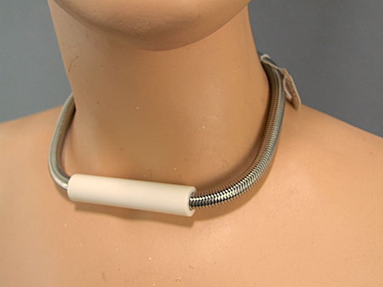 Art deco necklace with snake chain choker in a cream galalith tube, made by Jakob Bengel in the early 1930s. Similar ones can be seen in the Bengel books.