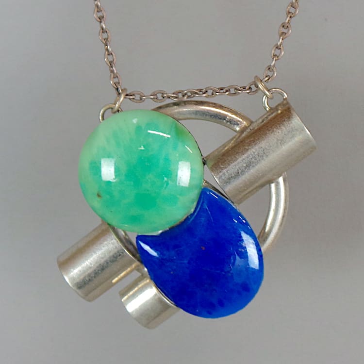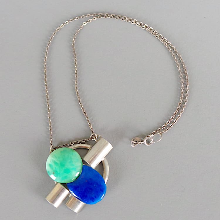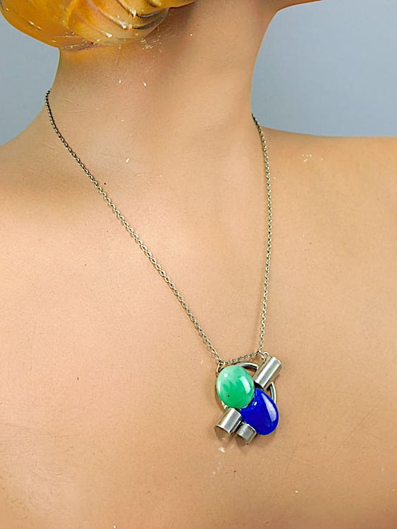 French art deco onyx and chromed metal necklace.