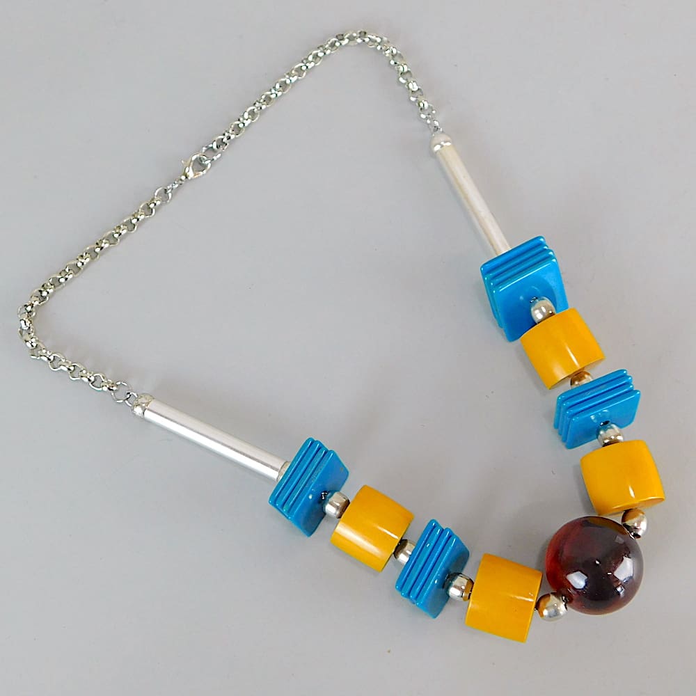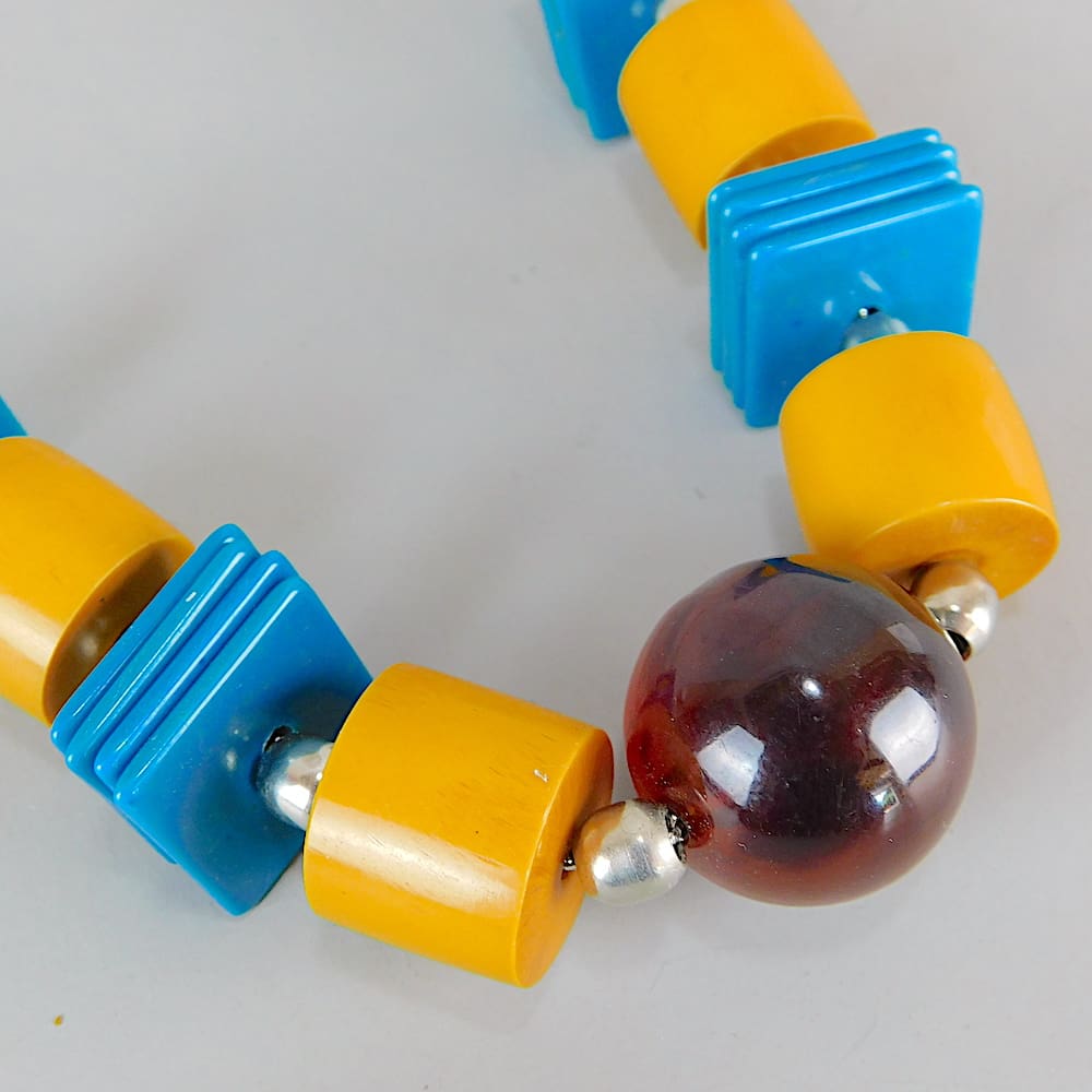 French art deco galalith square discs necklace.