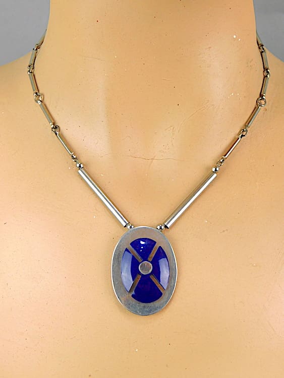 Chrome and purple galalith pendant necklace made in the 1930’s by Jakob Bengel.