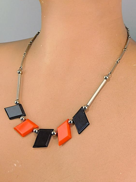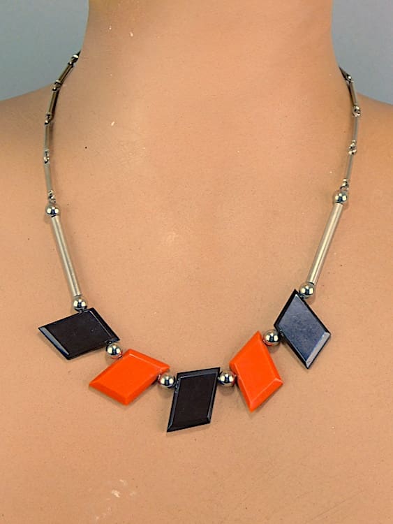 Black and coral galalith necklace made by Jakob Bengel in the early 1930’s.
