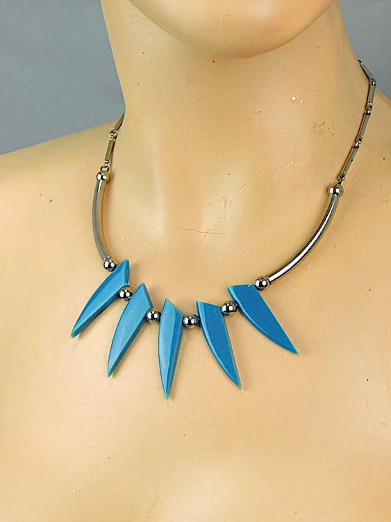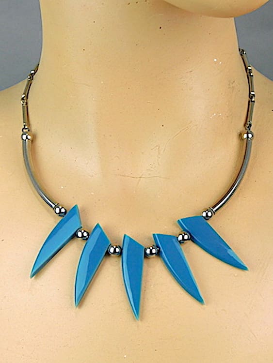 Blue galalith teeth with chrome balls and tubes, made by Bengel in the 1930’s.